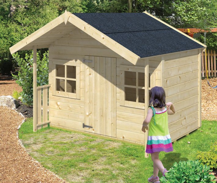 Sedlová střecha dětského domku Aladdin je dřevěná a lze ji za příplatek vybavit krytinou z černé lepenky. V základní výbavě domku je i dřevěná podlaha. Po obou stranách vchodových dveří jsou dvě okna. Stěny domku jsou z 16 milimetrů silných smrkových palubek. Aby domek vydržel co nejdéle a v co nejzachovalejším stavu, doporučujeme dřevo ještě před montáží natřít některým z našich mnoha ochranných nátěrů na dřevo. Díky ochrannému nátěru bude zahradní domek Alladin lépe čelit vlivům nepříznivého počasí, také různým škůdcům, houbám, plísním a hnilobě.