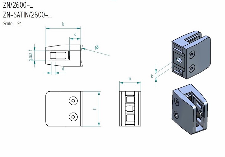 Materiál: ZAMAK slitina, Povrchová úprava: Brus, Tloušťka skla: 8 - 12,76, Sloupek: 40x40x2, Výplň: Sklo, Model: Model 26